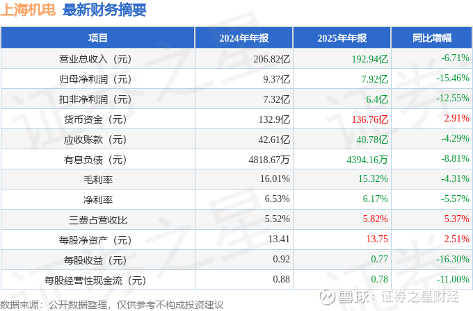据证券之星公开数据整理,近期上海机电(600835)发布2025年年报。截至本报告期末,公司营业总收入192.94亿元,同比下降6.71%,归母净利润7.92亿元,同比下降15.46%。按单季度数据看,第四季度营业总收入45.86亿元,同比下降8.24%,第四季度归母净利润8759.1万元,同比下降58.08%。本报告期上海机电公司应收账款体量较大,当期应收账款占最新年报归母净利润比达514.58%。