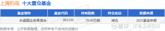持有上海机电最多的基金为长盛国企改革混合,目前规模为5.46亿元,最新净值0.668(3月20日),较上一交易日下跌0.6%,近一年上涨63.73%。该基金现任基金经理为代毅。