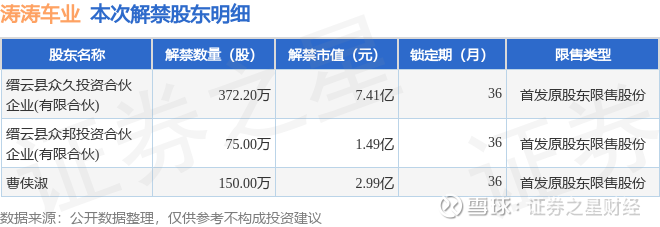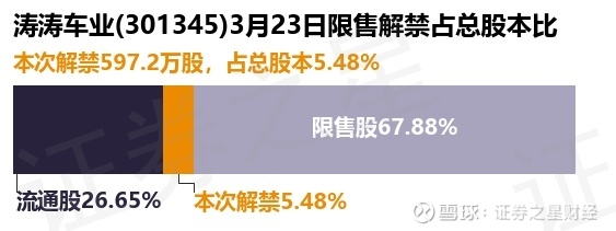 证券之星消息,根据市场公开信息整理,涛涛车业(301345)于3月23日将有597.2万股限售股份解禁,为公司首发原股东限售股份,占公司总股本5.48%。(本次数据根据历史公告整理得出,实际情况以上市公司最新公告为准)本次解禁后,公司还有7401.93万股限售股份,占总股本67.88%。具体如下图所示: