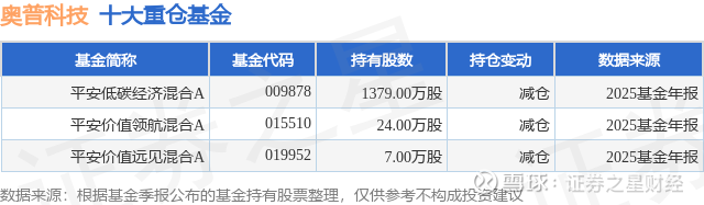 重仓奥普科技的公募基金请见下表: