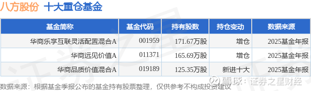 根据2025基金年报公募基金重仓股数据,重仓该股的公募基金共3家,其中持有数量最多的公募基金为华商基金的华商乐享互联灵活配置混合A。华商乐享互联灵活配置混合A目前规模为7.13亿元,最新净值2.705(3月20日),较上一交易日下跌1.39%,近一年上涨38.08%。该公募基金现任基金经理为余懿。余懿在任的基金产品包括:华商远见价值A,管理时间为2023年1月10日至今,期间收益率为59.63%;华商品质价值混合A,管理时间为2024年4月2日至今,期间收益率为98.74%;华商恒鑫回报混合A,管理时间为2025年3月4日至今,期间收益率为29.94%。