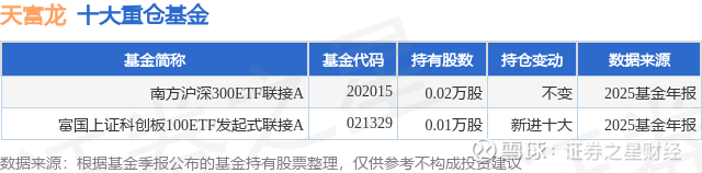 重仓天富龙的公募基金请见下表: