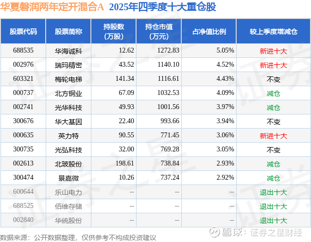 根据2025基金年报公募基金重仓股数据,重仓该股的公募基金共2家,其中持有数量最多的公募基金为华夏基金的华夏磐润两年定开混合A。华夏磐润两年定开混合A目前规模为1.78亿元,最新净值1.3392(3月20日),较上一交易日下跌2.82%,近一年上涨22.46%。该公募基金现任基金经理为张城源。张城源在任的基金产品包括:华夏磐泰混合(LOF)A,管理时间为2016年12月26日至今,期间收益率为81.97%;华夏磐利一年定开混合A,管理时间为2020年7月29日至今,期间收益率为89.92%;华夏磐锐一年定开混合A,管理时间为2020年12月22日至今,期间收益率为83.81%;华夏磐益一年定开混合,管理时间为2021年1月26日至今,期间收益率为53.18%。