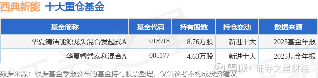 重仓西典新能的公募基金请见下表: