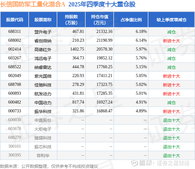 根据2025基金年报公募基金重仓股数据,重仓该股的公募基金共10家,其中持有数量最多的公募基金为长信基金的长信国防军工量化混合A。长信国防军工量化混合A目前规模为9.55亿元,最新净值1.7308(3月20日),较上一交易日下跌2.75%,近一年上涨35.25%。该公募基金现任基金经理为宋海岸。宋海岸在任的基金产品包括:长信中证500指数增强A,管理时间为2018年2月12日至今,期间收益率为129.48%;长信沪深300指数增强A,管理时间为2019年5月16日至今,期间收益率为79.41%;长信先进装备三个月持有混合A,管理时间为2021年11月29日至今,期间收益率为-3.78%。