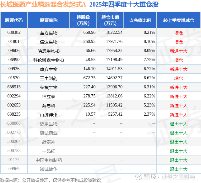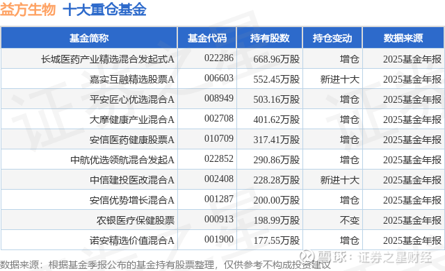 重仓益方生物的前十大公募基金请见下表: