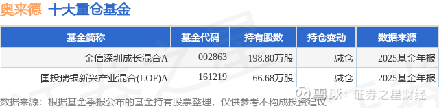 根据2025基金年报公募基金重仓股数据,重仓该股的公募基金共2家,其中持有数量最多的公募基金为金信基金的金信深圳成长混合A。金信深圳成长混合A目前规模为2.34亿元,最新净值2.915(3月20日),较上一交易日下跌1.3%,近一年上涨34.7%。该公募基金现任基金经理为黄飙 杨超。黄飙在任的基金产品包括:金信周期价值混合A,管理时间为2025年2月20日至今,期间收益率为31.94%;金信转型创新成长混合发起式A,管理时间为2025年5月17日至今,期间收益率为46.49%。杨超在任的基金产品包括:金信转型创新成长混合发起式A,管理时间为2022年1月19日至今,期间收益率为98.66%;金信消费升级股票A,管理时间为2022年8月16日至今,期间收益率为-8.43%;金信景气优选混合A,管理时间为2023年11月2日至今,期间收益率为55.18%;金信智能中国2025混合A,管理时间为2025年4月3日至今,期间收益率为10.48%。