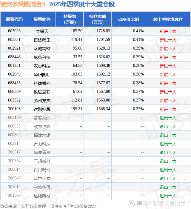 根据2025基金年报公募基金重仓股数据,重仓该股的公募基金共4家,其中持有数量最多的公募基金为诺安基金的诺安多策略混合A。诺安多策略混合A目前规模为21.2亿元,最新净值3.459(3月20日),较上一交易日下跌3.22%,近一年上涨49.48%。该公募基金现任基金经理为孔宪政。孔宪政在任的基金产品包括:诺安鼎利混合A,管理时间为2023年2月21日至今,期间收益率为12.15%;诺安中证500指数增强A,管理时间为2023年6月3日至今,期间收益率为17.17%;诺安沪深300增强D,管理时间为2024年1月30日至今,期间收益率为44.71%。