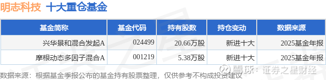 根据2025基金年报公募基金重仓股数据,重仓该股的公募基金共2家,其中持有数量最多的公募基金为兴华基金的兴华景和混合发起A。兴华景和混合发起A目前规模为0.39亿元,最新净值1.3724(3月20日),较上一交易日下跌3.22%。该公募基金现任基金经理为崔涛 黄生鹏。崔涛在任的基金产品包括:兴华景成混合A,管理时间为2025年7月9日至今,期间收益率为5.03%。黄生鹏在任的基金产品包括:兴华景成混合A,管理时间为2026年2月6日至今,期间收益率为-0.85%。