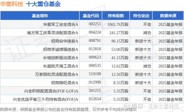 重仓华秦科技的前十大公募基金请见下表: