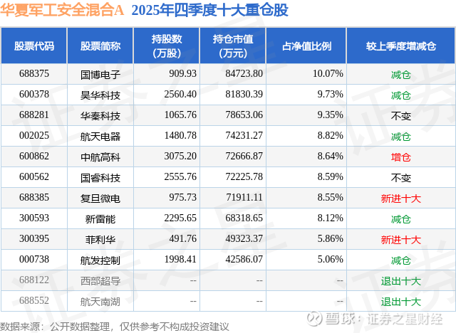 华夏军工安全混合A的前十大重仓股如下: