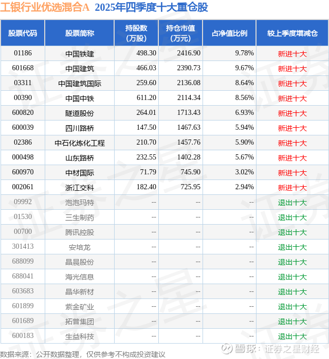 根据2025基金年报公募基金重仓股数据,重仓该股的公募基金共2家,其中持有数量最多的公募基金为工银瑞信基金的工银行业优选混合A。工银行业优选混合A目前规模为2.33亿元,最新净值1.0382(3月20日),较上一交易日下跌0.67%,近一年上涨27.68%。该公募基金现任基金经理为母亚乾。母亚乾在任的基金产品包括:工银稳健成长混合A,管理时间为2024年8月7日至今,期间收益率为46.16%;工银核心机遇混合A,管理时间为2024年12月10日至今,期间收益率为68.3%;工银美丽城镇股票A,管理时间为2025年9月15日至今,期间收益率为9.48%;