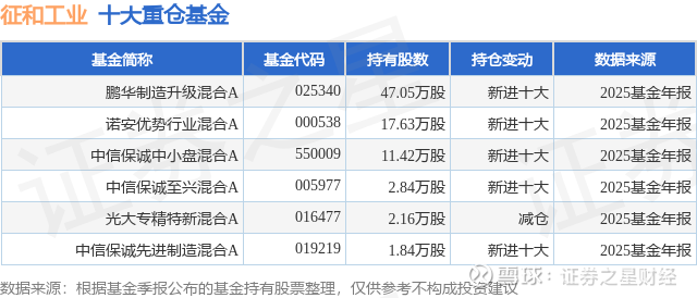 重仓征和工业的公募基金请见下表: