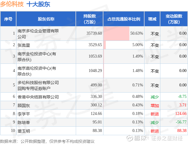根据多伦科技2025年三季报公布的十大股东详情如下: