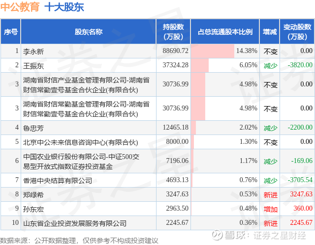 根据中公教育2025年三季报公布的十大股东详情如下: