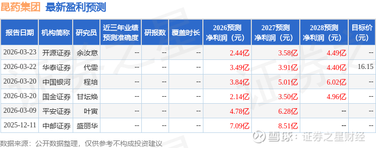 最新盈利预测明细如下:
