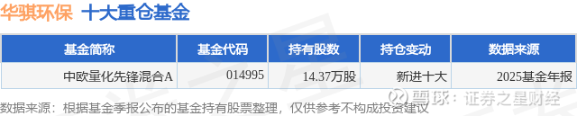 重仓华骐环保的公募基金请见下表: