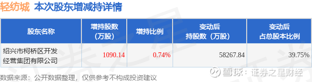 证券之星消息,3月24日轻纺城发布公告《轻纺城:轻纺城关于控股股东增持计划实施完毕暨增持股份结果的公告》,其股东绍兴市柯桥区开发经营集团有限公司于2025年11月25日至2026年3月23日间合计增持1090.14万股,占公司目前总股本的0.7437%,变动期间该股股价下跌6.43%,截止3月23日收盘报3.49元。