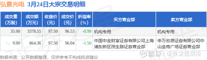 证券之星消息,3月24日弘景光电发生大宗交易,交易数据如下: