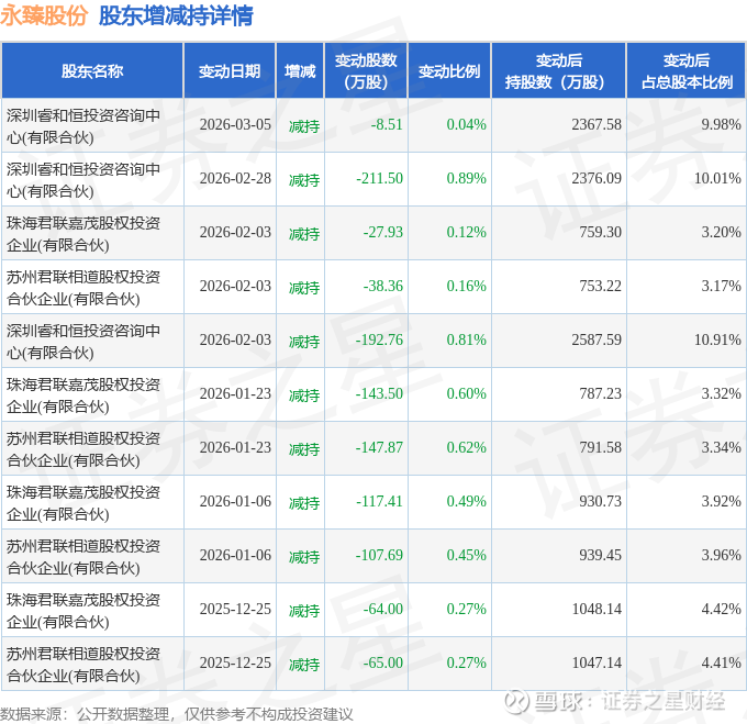 该股近半年内有股东持股变动,合计净减持1124.53万股,股东增减持明细如下表: