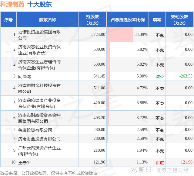 根据科源制药2025年三季报公布的十大股东详情如下: