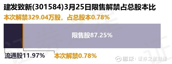 证券之星消息,根据市场公开信息整理,建发致新(301584)于3月25日将有329.04万股限售股份解禁,为公司首发机构配售股份,占公司总股本0.78%。(本次数据根据历史公告整理得出,实际情况以上市公司最新公告为准)本次解禁后,公司还有3.68亿股限售股份,占总股本87.25%。具体如下图所示: