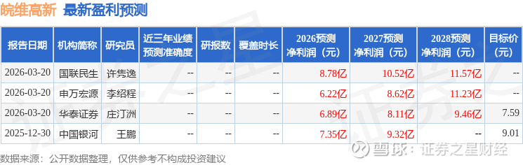 最新盈利预测明细如下: