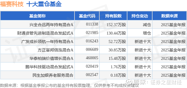 重仓福赛科技的公募基金请见下表:
