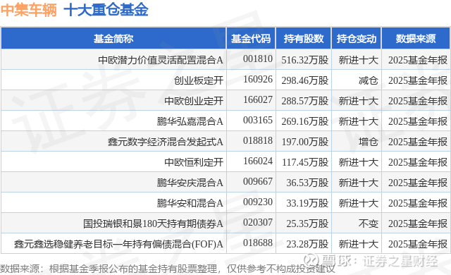 重仓中集车辆的前十大公募基金请见下表: