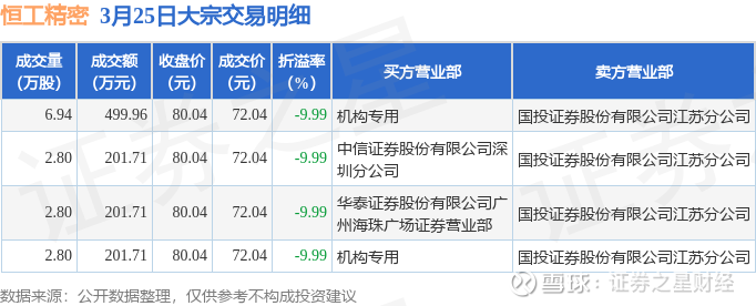 证券之星消息,3月25日恒工精密发生大宗交易,交易数据如下: