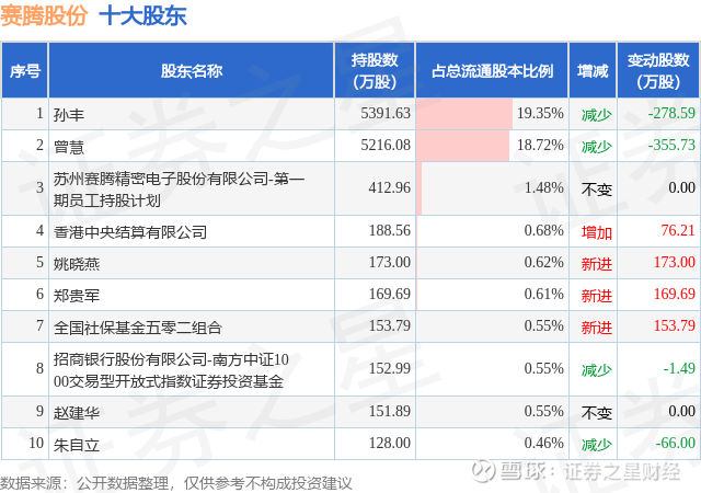 根据赛腾股份2025年三季报公布的十大股东详情如下: