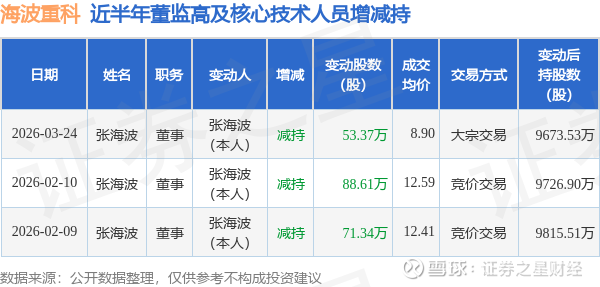 海波重科近半年内的董监高及核心技术人员增减持详情如下: