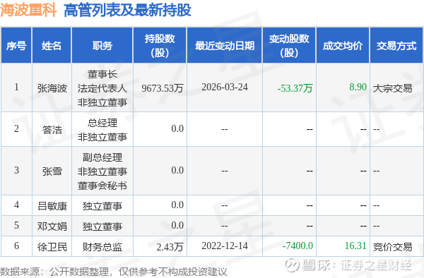 海波重科的高管列表及最新持股情况如下: