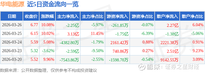 证券之星消息,华电能源3月26日涨停收盘,收盘价6.77元。该股于14点55分涨停,未打开涨停,截止收盘封单资金为1280.17万元,占其流通市值0.03%。
