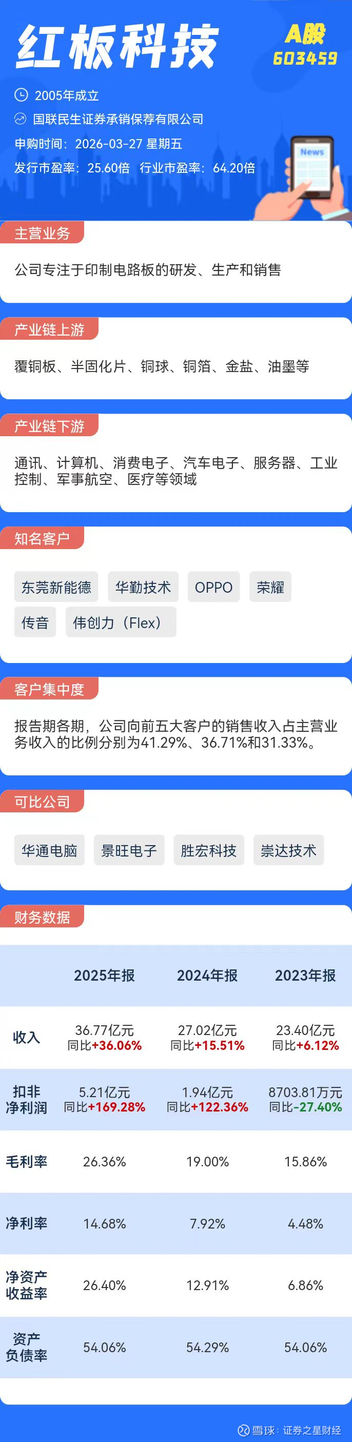 募资情况方面,据招股书,红板科技原计划拟发行1亿股,募资约20.57亿元,全部用于年产120万平方米高精密电路板项目。以此次17.7元/股的发行价计算,公司此次实际募资约17.7亿元,与原计划相比少募约14%。
