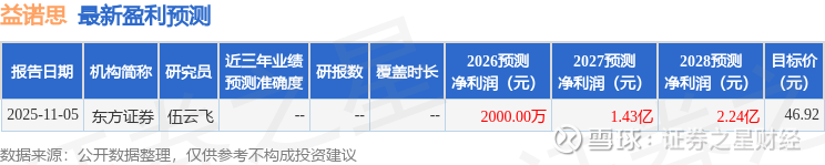 最新盈利预测明细如下:
