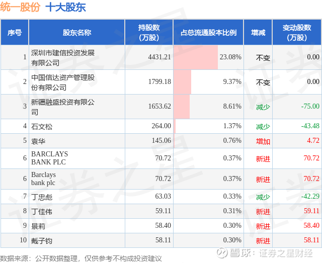 根据统一股份2025年年报公布的十大股东详情如下: