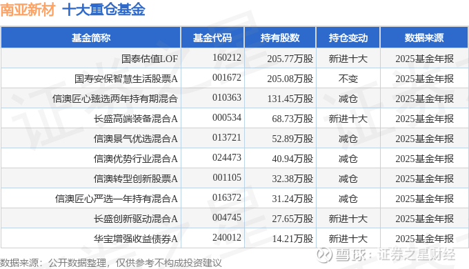 持有南亚新材最多的基金为国泰估值LOF,目前规模为15.64亿元,最新净值4.5318(3月25日),较上一交易日上涨3.13%,近一年上涨33.41%。该基金现任基金经理为王兆祥。