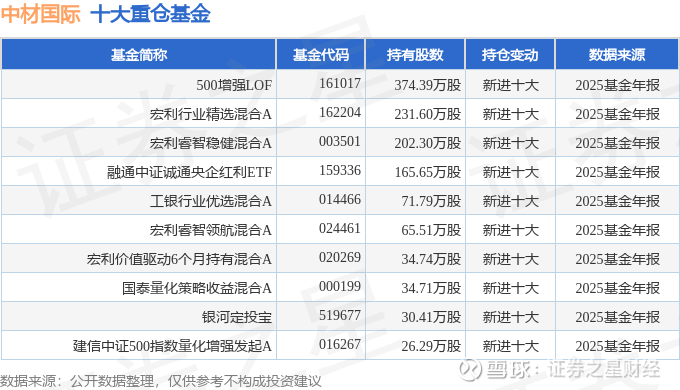 持有中材国际最多的基金为500增强LOF,目前规模为46.2亿元,最新净值2.572(3月25日),较上一交易日上涨2.19%,近一年上涨28.6%。该基金现任基金经理为李笑薇 方旻 汤杰强。