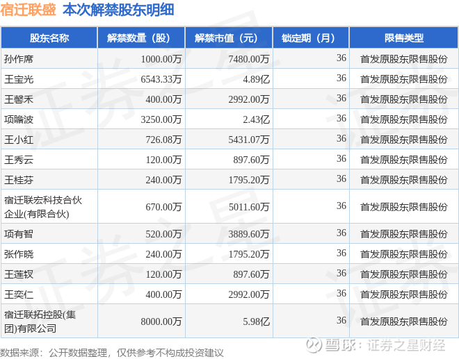 证券之星消息,根据市场公开信息整理,宿迁联盛(603065)于3月27日将有2.22亿股限售股份解禁,为公司首发原股东限售股份,占公司总股本53.06%。(本次数据根据历史公告整理得出,实际情况以上市公司最新公告为准)本次解禁后,公司已无限售股份。具体如下图所示: