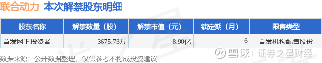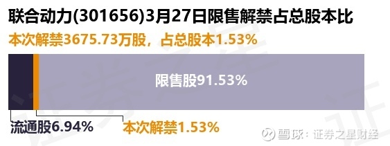 证券之星消息,根据市场公开信息整理,联合动力(301656)于3月27日将有3675.73万股限售股份解禁,为公司首发机构配售股份,占公司总股本1.53%。(本次数据根据历史公告整理得出,实际情况以上市公司最新公告为准)本次解禁后,公司还有22.01亿股限售股份,占总股本91.53%。具体如下图所示: