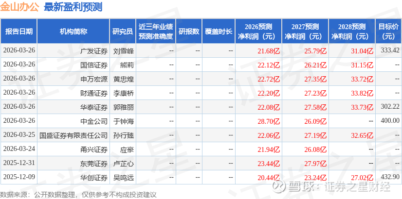 金山办公(688111) 长期成长路径清晰,维持“买入”评级 考虑公司持续加大AI战略投入,我们下调公司2026-2027年归母净利润预测为22.07、26.06亿元(前值为22.88、27.70亿元),新增2028年预测为30.70亿元,对应EPS分别为4.76、5.62、6.62元/股,当前股价对应PE为51.0、43.2、36.7倍,持续看好公司AI及出海战略,维持“买入”评级。 业绩符合预期,海外业务表现亮眼 (1)2025年度公司实现营业收入59.29亿元,同比增长15.78%;实现归母净利润18.36亿元,同比增长11.63%;实现扣非归母净利润18.03亿元,同比增长15.82%。公司经营活动净现金流为25.02亿元,同比增长13.93%。整体来看,公司业绩符合预期。(2)分业务看,WPS个人业务收入362,554万元,同比增长10.42%;其中国内WPS个人业务收入334,399.59万元,同比增长7.87%,累计年度付费个人用户数达4,615万,同比增长10.67%;海外WPS个人业务收入28,154.01万元,同比增长53.67%,累计年度付费个人用户数达285万,同比增长63.39%。WPS365业务收入71,990万元,同比增长64.93%。WPS软件业务收入146,113万元,同比增长15.24%。其他收入12,014万元,同比下降8.79%。(3)公司销售毛利率为85.95%,同比提升0.81个百分点;此外,公司销售费用率为19.22%,同比下降0.14个百分点,管理费用率、研发费用率分别为7.99%、35.34%,同比提升0.13、2.23个百分点。 C端+B端同步发力,率先开启办公智能体时代 截至2025年底,公司WPS AI国内月活用户已超8013万,同比增长307%。WPSAI服务产生的日均词元(Token)调用量超过2000亿,同比增长超12倍。公司推出办公智能体"WPS灵犀",率先开启办公智能体时代。目前WPS灵犀已迭代升级为"AI办公全能伙伴",并推出演示、表格、文档三大智能体。WPS365不断完善数字员工生态布局,构建“官方标准化+企业定制化”发展模式。WPS365已正式接入OpenClaw能力,进一步丰富AI办公生态布局。 风险提示:AI产品市场接受度不及预期;宏观经济影响下游客户付费能力。