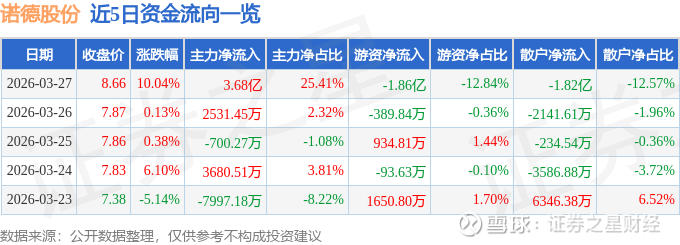 3月27日的资金流向数据方面,主力资金净流入3.68亿元,占总成交额25.41%,游资资金净流出1.86亿元,占总成交额12.84%,散户资金净流出1.82亿元,占总成交额12.57%。
