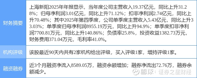 2026年3月19日,开源证券研究员陈蓉芳,祁海超发布了对上海新阳的研报《公司信息更新报告:五大材料布局驱动业绩高增,三大基地共振开启新周期》,该研报对上海新阳给出“买入”评级。研报中预计2026-2028年归母净利润3.94/5.26/6.80亿元(2026-2027原值为3.21/4.12亿元),当前股价对应63.8/47.7/36.9倍PE,维持“买入”评级。证券之星数据中心根据近三年发布的研报数据计算,该研报作者对此股的盈利预测准确度为69.44%。