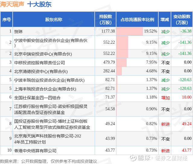根据海天瑞声2025年三季报公布的十大股东详情如下: