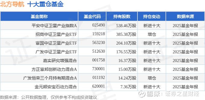 持有北方导航最多的基金为平安中证卫星产业指数A,目前规模为1.53亿元,最新净值1.1292(3月27日),较上一交易日上涨0.05%。该基金现任基金经理为翁欣 马浩然。