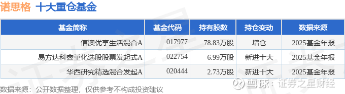 持有诺思格最多的基金为信澳优享生活混合A,目前规模为1.67亿元,最新净值1.0745(3月27日),较上一交易日上涨4.78%,近一年上涨17.52%。该基金现任基金经理为杨珂。