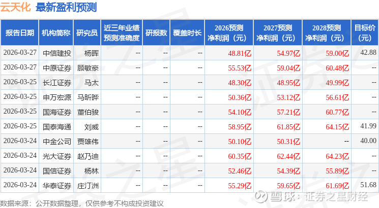 最新盈利预测明细如下: