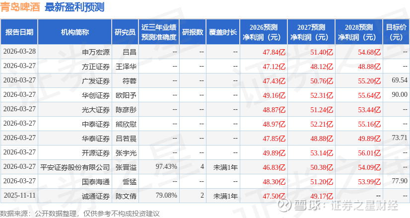 最新盈利预测明细如下: