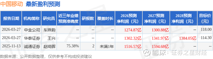 证券之星数据中心根据近三年发布的研报数据计算,诚通证券赵绮晖研究员团队对该股研究较为深入,近三年预测准确度均值为75.38%,其预测2026年度归属净利润为盈利1516.57亿,根据现价换算的预测PE为301.35。
